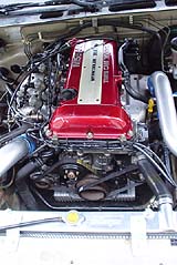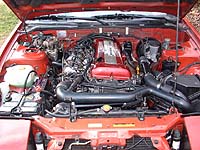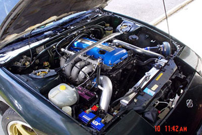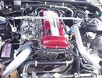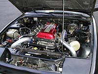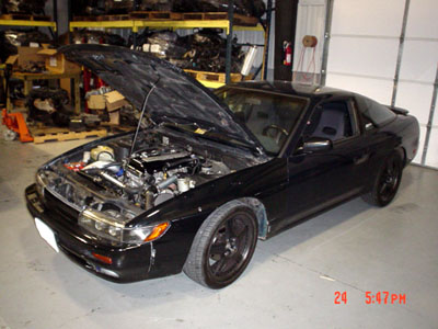 Andrew S.'s S13 motor was built with CP Pistons, Eagle rods, GT3076, 72lb injectors, JGY flywheel, JGY pulley, Greddy RAS, and is ready for some real power; expect 450 to 500 WHP at 22psi