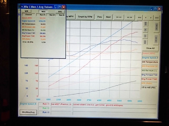 Even with two bad cylinders, here are the results of the dyno run. The Z made 303HP.