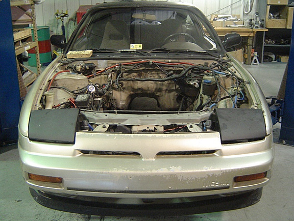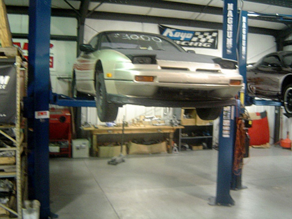 Miguel's S13 is on the lift and getting ready to have the motor removed.