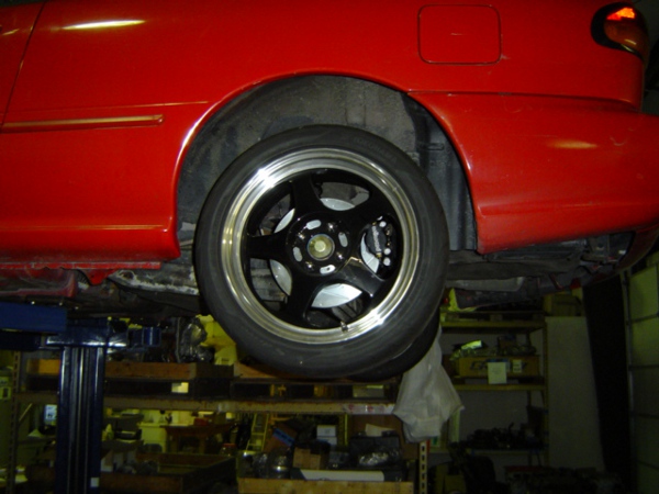 Here are Evan's new Drag DR23s in gloss black, with Yokohama S Drives wrapped on them...