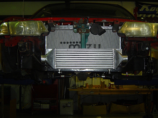 His intercooler core is on, bumper is ready to be trimed for fitment...