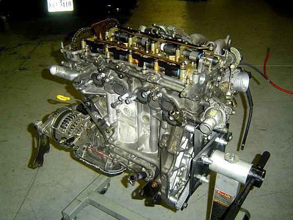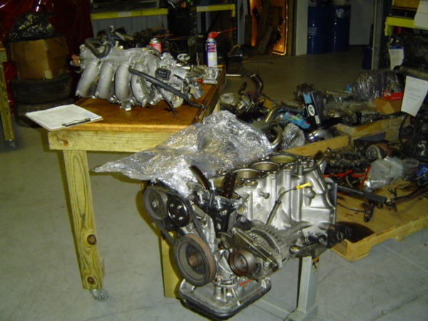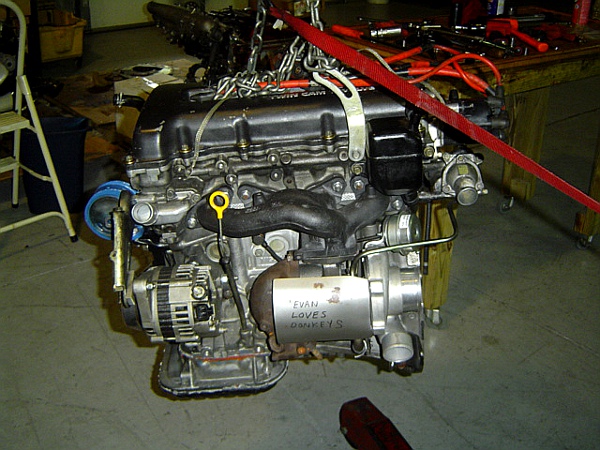 Heres the motor and transmission out of the car getting ready for some awesome upgrades...