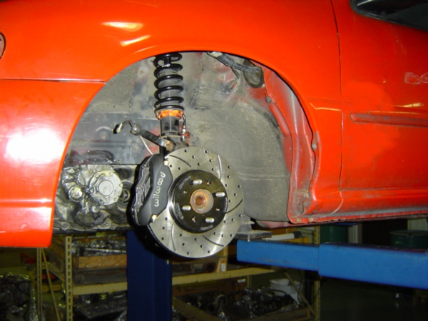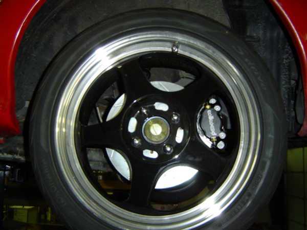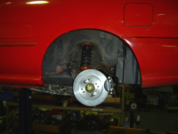 While doing Evan's ksport suspension and big brake upgrade from JGY, we noticed that the Se-R rear disc brakes were bolted in differently than the 1.6 car's drum brakes. So as nifty as we are at JGY we decided to change out the rear ends!