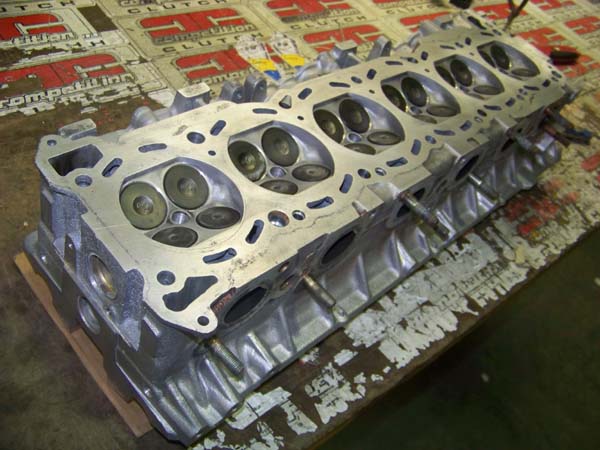 Ivans freshly machined RB25 head waiting in line to get on the block
