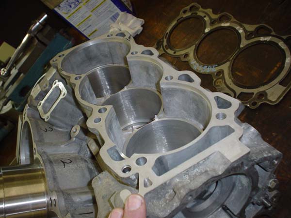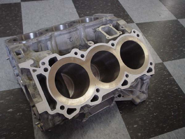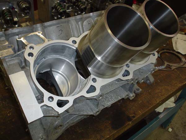 The 4.3L is ready for assembly with the sleeves fully installed.