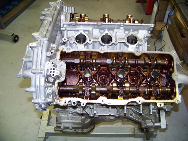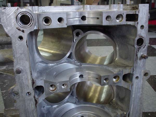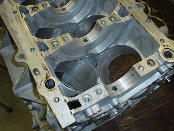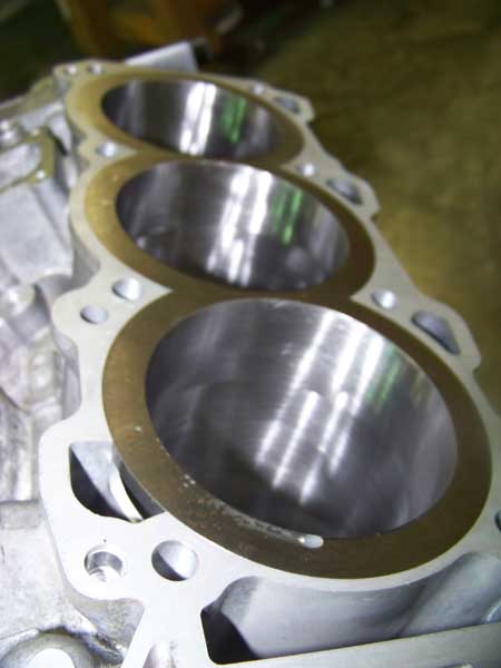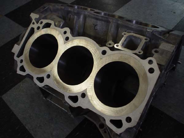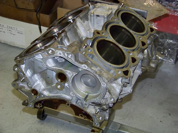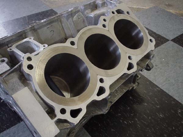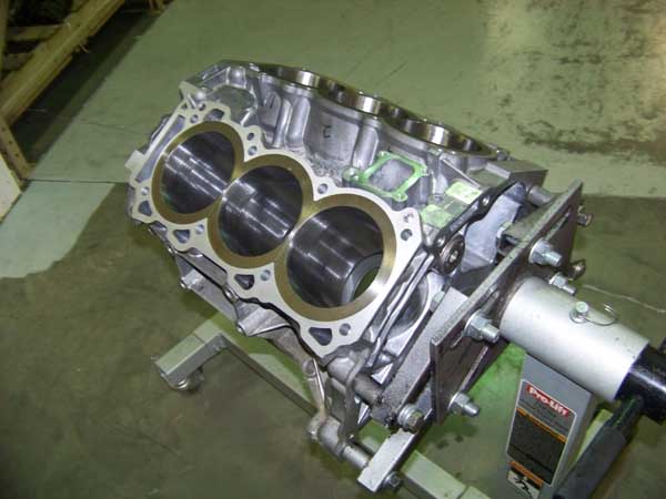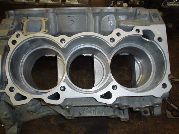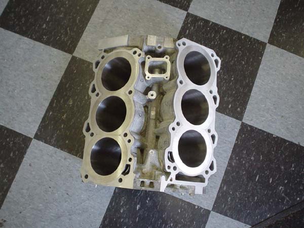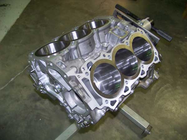 The VQ motor with solid deck sleeves installed awaiting finish bore