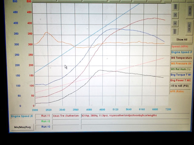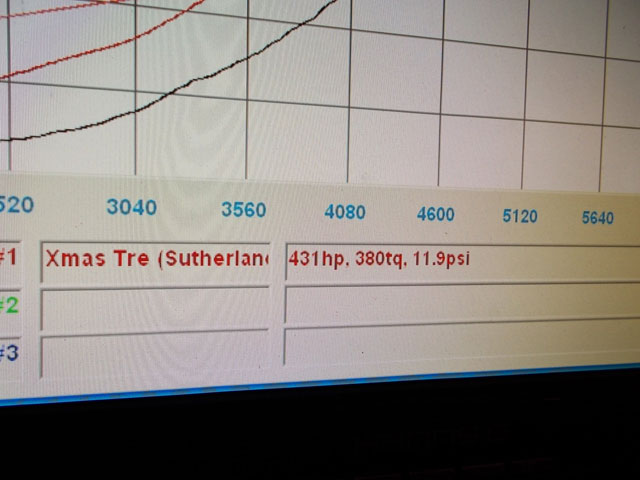 We netted 431HP and 380tq at a staggering 11.9psi. This motor was built with care and love and apparently LOVES power.