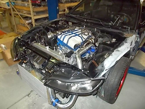 The motor is in and the intercooler kit's on