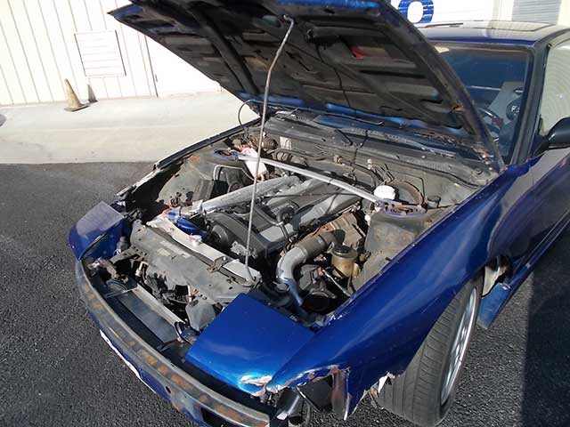 It's powered by an RB25. We are going to install a Haltech, our JGY fuel kit, and a Precision 6266 and turn the wick up on this car - from 250HP to 500HP.