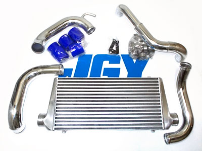 Greddy M-Spec Front Mount Intercooler Kit - This kit would be best for starters. This unit is not a tube type, but a laminated layer type inside the core. The CCP process had been omitted to keep the cost down, however, the end tanks and the pipes have been buffed for that shiny intercooler look. We rate this core for about 340hp -$call In stock
